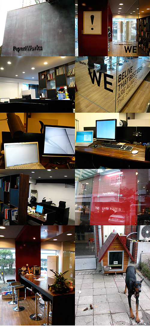 사무실안에 모든 기둥들이 유리로 되어있어요~ 바닥역시 나무 계단형식이라 사무실다닐때 주의가 필요하더라구요...ㅎ 저도 개가 있는게 젤루 좋아요..^^