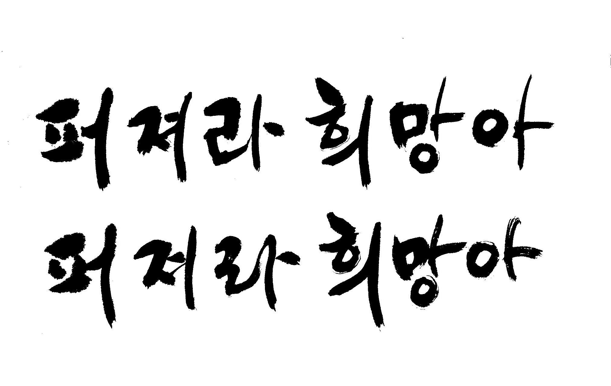캘리 부탁드립니다 김철호 일반 0 7040 2009.02.16 14:30 > > > > > 안녕하세요 > > > > 캘리 부탁을 좀 드리려는데요. > > 문구는 '퍼져라 희망아' 입니다. > > > > 광고 시안으로 사용할 것이고 약간 강한 느낌이었으면 좋겠습니다. > > > > 많은 분들 도움 부탁드립니다 ^-^ > > >