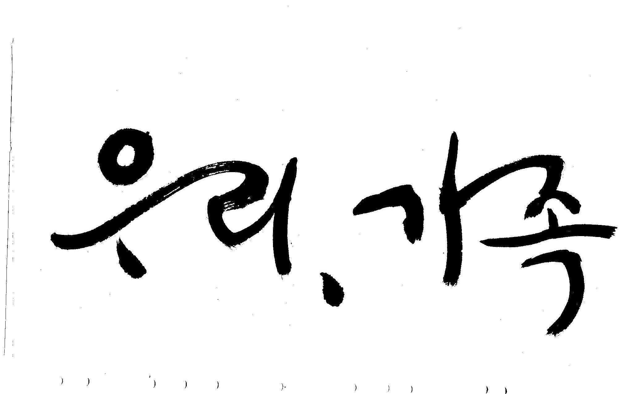 기축년 신년 으뜸말 휘호 김철호 일반 0 4816 2009.01.02 20:21 어떤 으뜸말이 올해엔 필요할까... 고민하다가.. 언제나 그랬듯이 어려울때에는 무엇보다도 우리라는 공동체의 가치관이 더 필요할것 같고 가족이라는 최소의 가치가 (여기서 최소라고 하는것은 가치를 말하는 것이 아니고 가장기본적인 단위를 말하는 것입니다.) 무엇보다도 앞서야 한다고 느꼈으므로 "우리"와 "가족"을 주제어로 정했습니다. 이것은 무조건 내 생각입니다. 다른분들은 다른 주제어가 있겠죠... 어쨌든지 ... 새해엔 행복하고 건강하세요..
