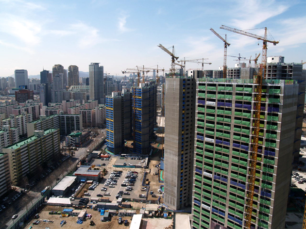 잠실 시영 재건축 아파트 33층 꼭대기에서 찍은 사진....