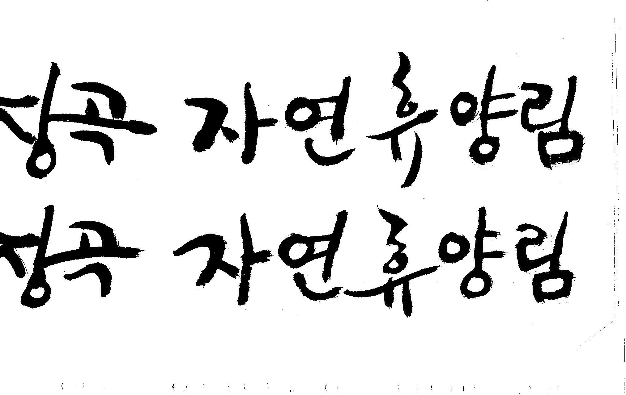 캘리 부탁드려요~ 김철호 일반 1 9877 2008.12.25 23:24 > > 홈페이지 시안 작업중인데. > 메인으로 들어가는 폰트를 명조체로 넣었는데 좀 딱딱한 느낌이 들어 > 캘리로 쓰면 느낌이 좋을것 같아서 부탁드리게 됐습니다. > [장곡 자연휴양림] 이구요. > 홈페이지 시안으로 채택되면 결과물 보여드릴께요^^ > 추운겨울 감기 조심하시고 > 즐거운 크리스마스 되세요! > 감사합니다.. 유용하게 쓰시길... 글자수가 많아서 스캔이 잘렸네요.. 헷갈려서 중복되게 올라간것이 있을것인데.. 맞춰서 편집하세요..